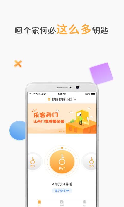 “乐客管理端”是深圳市乐客智联科技有限公司旗下服务于小区物业、城中村的门禁等智能硬件设备的软件,小区物业、城中村房东可以通过下载使用“乐客管理端”应用实现小区开门,发布公告,小区物业相关综合服务,实现便捷开门,便捷管理的宗旨,便捷开门 智慧管理 快乐生活。