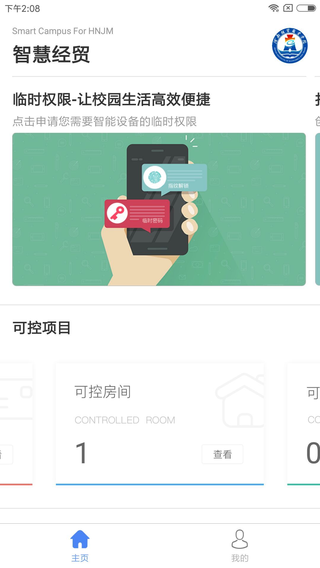 智慧经贸智能锁管理系统,功能包括临时权限申请、打开管理、计划任务、配置采集器信息等。并且可以方便的接收到系统的通知消息、查看可控房间、可控卡片、可控设备等信息。为您管理经贸学院的智能锁提供高效便利的服务。