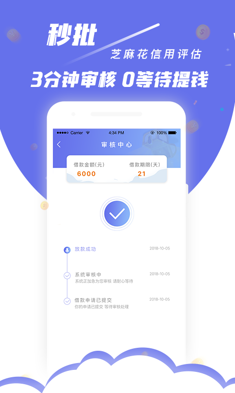 芝麻花——全程APP线上申请,审核提现一步到位。