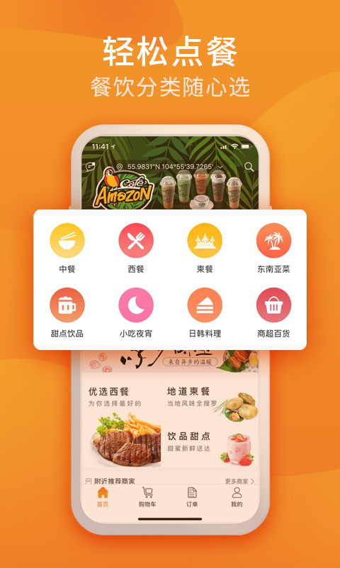 网罗附近外卖美食,预约订餐;