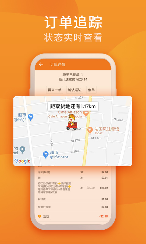 及时通知外卖状态,准时送达;