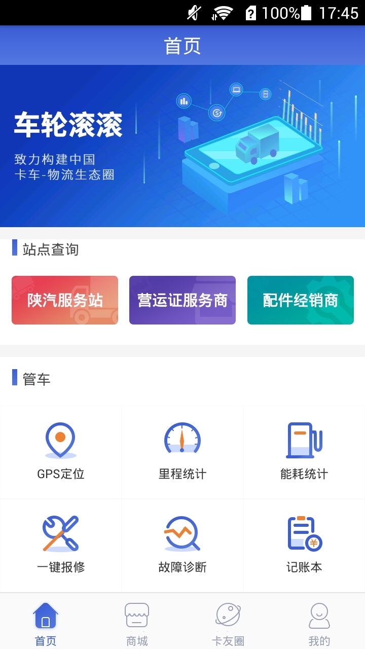 车轮滚滚平台,以车辆运行数据为基础,深度整合后市场金融服务及商品、陕汽集团及产业链合作伙伴的优质资源,线上线下全方位服务广大卡车车主和司机,为其提供一站式综合解决方案。致力于构建与用户、合作伙伴共存共荣、互联互通的卡车物流生态圈。