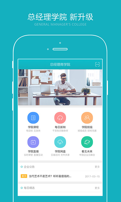 1)海量总经理视频课程:覆盖战略布局、商业模式、转型升级、企业经营、企业管理、趋势分析、资本运作、总经理素养等八大模块。