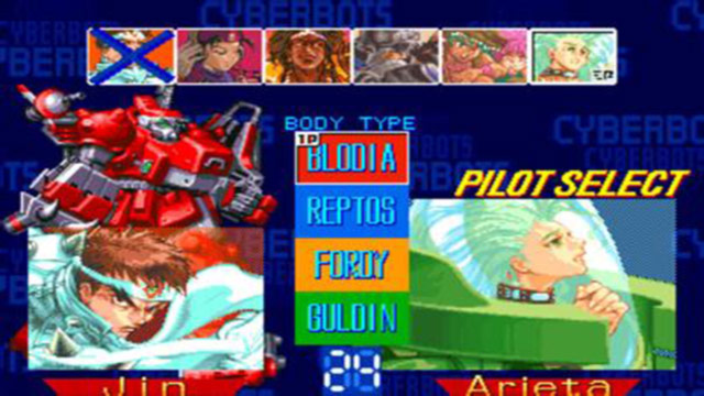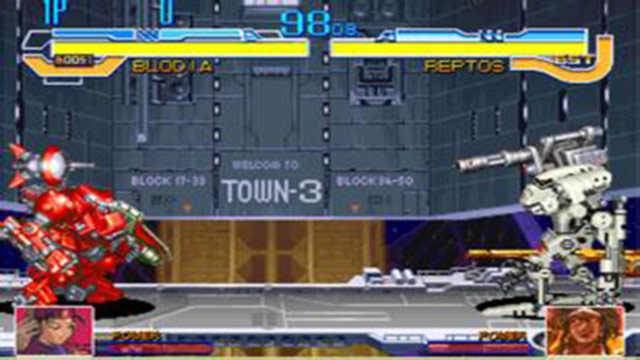 Cyberbots是一款典型的Capcom格斗游戏,虽然在玩法与操纵上与其他同门格斗游戏稍有不同。机台的键位设置上,两个按键对应机甲手臂的标准攻击,一个射击按键发动炮火攻击,还有一个按键用来冲锋。
