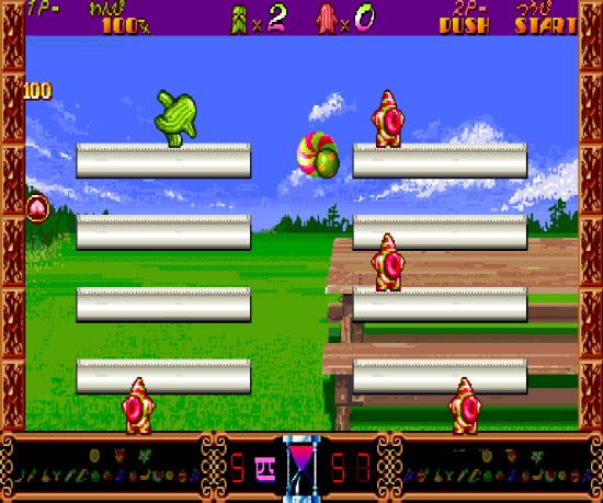 《仙人掌兄弟》是Tecmo制作的一款经典游戏,游戏中小小的仙人掌很给力,A键丢球,可以把敌人困住而且滚走,但注意不要让球滚到自己哦!