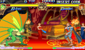 古今中外,来自世界各个角落的吸血鬼系、僵尸齐聚一堂,各自施展绝活,目的是为了成为 最强恶魔 。这就是CAPCOM承接《街霸2》于1994年推出,首个利用卡通色调与画风的另一款格斗热作《恶魔战士 午夜斗士》(Vampire - The Night Warriors)