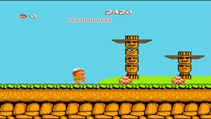 游戏的目的是救出主角高桥名人的恋人蒂娜。整个游戏共有8个场景,而每一个场景又包括4个阶段。主角会在最后一个阶段的结尾遇到BOSS角色。只有打倒了BOSS(弱点在头部)才可以顺利通关。