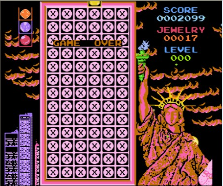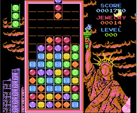 由街机移植的著名智力游戏。将上方落下的不同颜色的方块以纵、横、斜的顺序排列即可将其消去。