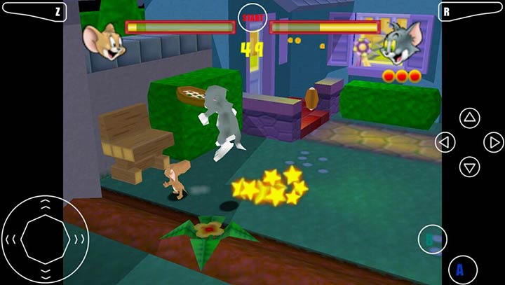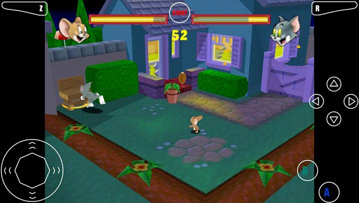 《猫和老鼠》以着名卡通人物为主角设计的一款动作、格斗游戏,和动画片中不同的是,这回的老鼠不再是一个劲的 逃 了,而是和猫正面相对,一场大战。与其他3D格斗游戏一样,在一个封闭的环境,刚开始游戏时可选择 汤姆猫 或 杰瑞鼠 ,只要在自己的血槽被打空之前将对方击倒就取得了游戏的胜利!虽然猫和老鼠也能拳拳相向,但毕竟这不是正途,更重要的是有效的利用场内的道具来给对方以致命打击……