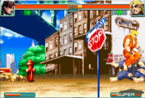 超级街头霸王2是CAPCOM在掌机GBA平台的推出的一款经典格斗游戏。超级街头霸王2比起街机版的街头霸王整整多了4个人物,每个人物都增加了一个必杀技,而且还加入了很多连击啊破解招啊等新一代格斗的要素,总来的说超级街头霸王2在承袭了街头霸王的优点之后还创新了很多新的元素,是一款既怀旧又有新意的作品。