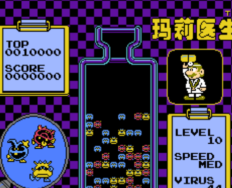 《马力欧医生》是日本游戏制造商Nintendo公司制作的一款益智游戏。在游戏中,玩家使用从上方接连落下的药丸击退病毒。使药丸旋转落下,如果纵向或横向有4个以上和病毒同色的药丸排列(包括病毒在内),就能消灭他们。如果消灭瓶中所有的病毒,就能成功通过。要是药丸堆积到瓶口的话,游戏就结束。
