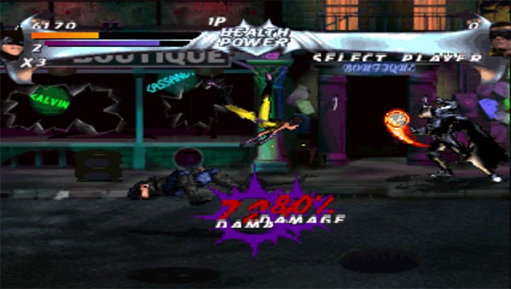 改编自同名电影(《蝙蝠侠3》),游戏的画面非常出色,操作手感也很好,人物的攻击方式也丰富多彩,摔投、快速击打、防御反击以及非常华丽的必杀技使游戏玩起来非常过瘾,道具也是丰富多彩,基本上忠于原著。强烈推荐!美中不足的是,游戏场面比较乱,玩时间长了很容易头晕。