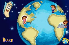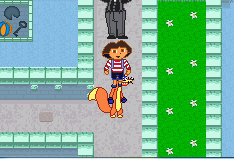 主角小女孩名叫朵拉,留着棕褐色短发、穿着粉红色外衣、背着紫色小书包,她的朋友群体:猴子、公牛、变色龙、鸟 Tucan、松鼠和捣蛋的狐狸。展开了冒险之旅。
