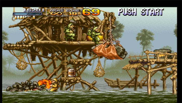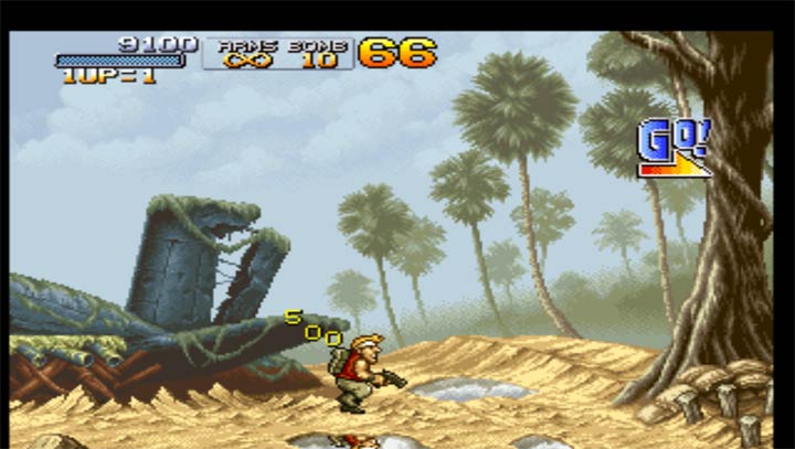 《合金弹头》是日本SNK公司推出的一系列2D横板射击过关游戏,一部2D横板射击过关游戏系列达到如此程度真正算得上登峰造极。8方向跳跃射击、主枪火力品种全面、大威力抛物线手雷再加上近身速度极快的匕首攻击,一个全能型的兰博式主角诞生了。而每关必定出场的乘物——坦克兵器Metal Slug更是具备了明星所需要的一切要素,凡是见过这款游戏的人无不对这部Q版小坦克着迷。两种不同的游戏结局,使得这款游戏拥有深奥的寓意所在。