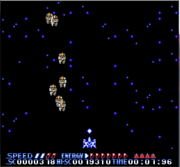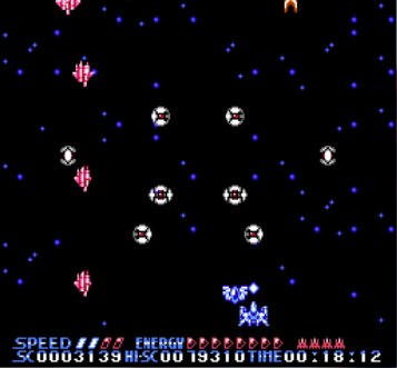 FC上的一款经典的射击游戏。游戏的整体节奏偏快,因此对操作有一定的要求,A键射击,按出B键可以蓄力,蓄满后按A键可以发出大招。