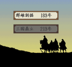1992年ANGEL公司在SFC上推出了《横山光辉三国志》,也是SFC上不多的三国题材原创游戏之一。顾名思义,游戏中角色的形象与《吞食天地》一样取自横山光辉的漫画。游戏完美利用了SFC独有的放大缩小技能,可缩放的战略地图和野外自由行军使其具有了独特的魅力。