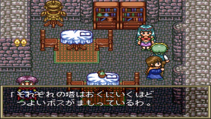 清新的画面风格,人物比例很大,动听的音乐和出人意料的配音效果,感觉实在很豪华。形式上和合作商CHUNSOFT的不思议迷宫系列相似,每次进出迷宫的构造都不同,我方行动(停)敌也动(停),最大的区别体现在战斗方面,玩家实际操纵的是后方的魔法师,利用键和方向键的组合发动魔法,而肉盾战士是挡在前面自动攻击的,实际也是一款魔法型主人公的RPG。从角色状态上看,LV是三位数,加上数量不菲的迷宫,复杂多变的魔法组合,等等要素来看,绝对是不容错过的极品游戏