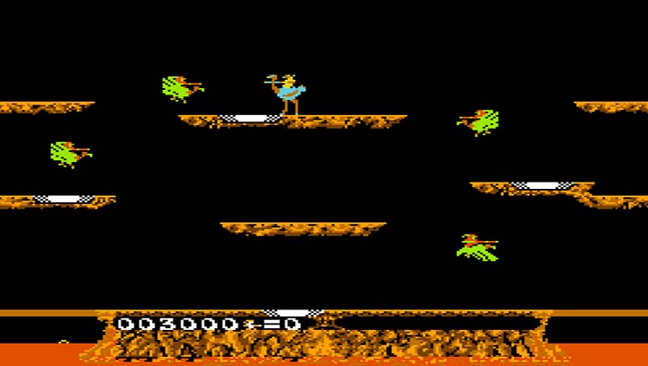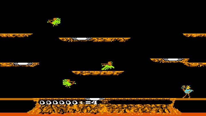 在一片茂密的森林中,作为一个部落守护者的你(玩家),遇到了一群外来的入侵者,双方都骑在训练有素的飞鸟上进行攻击,你(玩家)必须在敌方飞鸟的上方攻击才能将对方杀死,否则就会反被对方杀死,游戏中只需用上、下、左、右四个键控制。