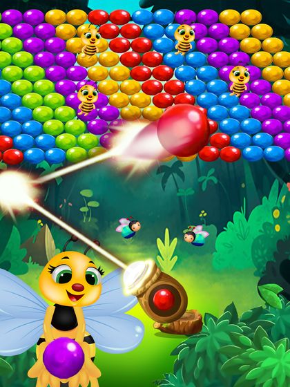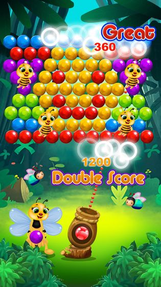 蜜蜂气泡游戏是一款,非常好玩的改编经典泡泡龙游戏的,老少皆宜的休闲益智类游戏。玩家在游戏中操控气泡大炮,对上方彩色气泡进行射击,当同一颜色的三个以上的气泡连在一起是,泡泡就会自动爆炸。游戏以卡通动画的形式进行设计构造,让整个游戏充满童趣,玩家可以在放松的游戏环境下进行闯关。