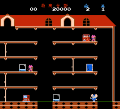 超经典FC游戏,由日本南梦宫于1983年发行的游戏,玩家扮演着一只叫做 Mappy 小警察的老鼠,取得物品,并躲过猫咪们的攻击,即可过关。