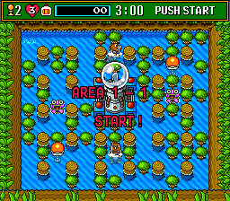 作为策略动作游戏的炸弹人自发布以来就一直受人们喜爱,而《超级炸弹人3》亦是登陆SFC的第三作,本作需要炸毁2处防卫塔才能过关。