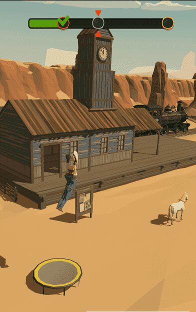 4、让你的牛仔不断飞跃,成功到达终点。