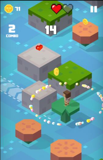 拇指英雄跳一跳是一款营救心爱的女孩为背景的休闲游戏,你心爱的女人被可恶的怪兽给抓走了,你将背上行囊踏上此次的冒险之旅,在每一个方块之中可以收集红心来增加你的生命血量,你受到了攻击会损失一部分血量,在这个漂浮的河道之中想办法来过关。