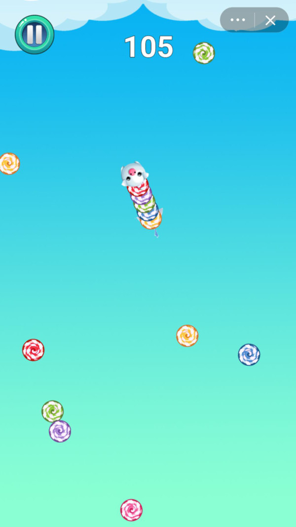 可爱小萌猪是一款有意思的消除类手游,这里有一只飞天小猪,你要控制小猪猪的飞行方向,让它收集天空中美味的糖果,让小猪的身后连成一条彩虹糖果尾巴,收集的糖果越多,你的得分就越高。