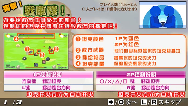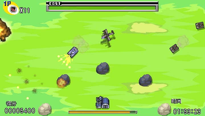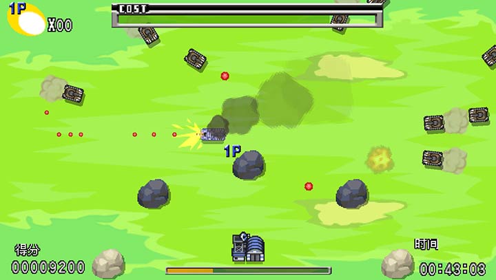 《突击!战车队》是一款比较简单的射击游戏。类似于坦克大战的打法,散弹等强力子弹有时间限制,游戏支持双人模式,但不需联机而是两人分别控制一侧的按键,非常有意思的一款游戏。
