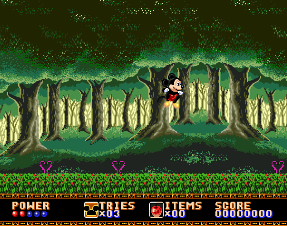 《米老鼠之奇幻城堡》是美国游戏制造商制作的一款动作冒险游戏。游戏故事讲述,米奇和女友米妮在大森林中快乐地跳舞时,米妮被巫婆抓走,米奇一路跟随,在悬崖边上,他看到了一座被阴暗压抑所包围的城堡。从此他开始了解救女友的危险之路。