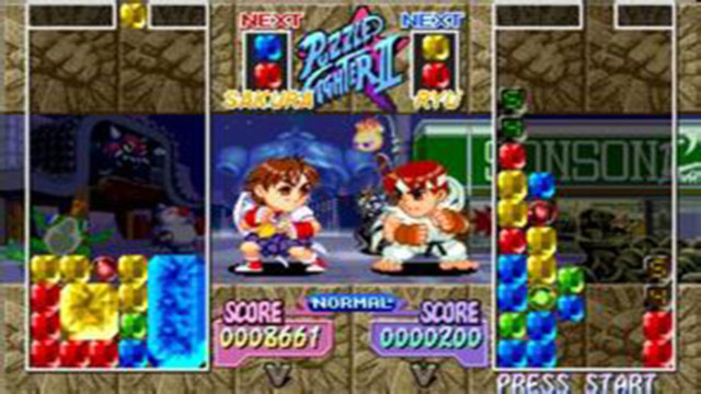 1996年推出的以Q版角色进行方块对战的作品。游戏中有大量街霸角色登场,每个角色都有符合其特性的攻击方式。是一款大受好评的PUZ游戏。有两种模式选择,一种是故事模式,另一种则是玩家之间的对战模式。