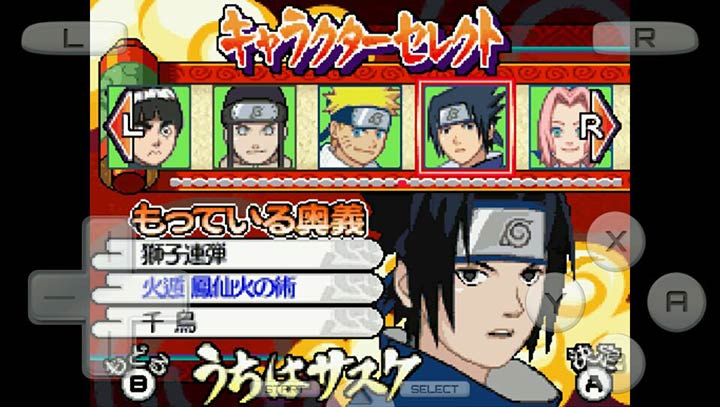 可使用30名以上角色,此次的DS版本类似于超级明星大乱斗的乱斗型格斗,将利用触摸屏选择道具,和发动必杀技,如鸣人的 螺旋丸 就需要玩家划动屏幕。