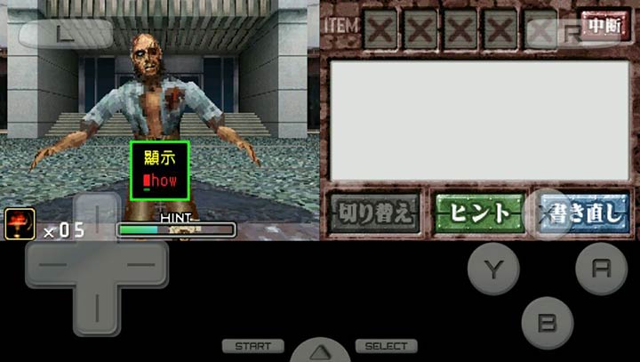 本作是世嘉公司旗下《死亡之屋》系列全新作品,游戏与其他的英语学习软件一样,玩家根据画面中的提示,使用触摸屏完成各种不同的英语单词,就可以击倒城市中横行的丧尸。 游戏中共收入了从基础英语到大学考试阶段的英语单词共计5000个,并且全部有正确的语音演示。使用这款游戏,一边打倒丧尸,一边提高自己的英语水平吧!游戏操作:游戏考触摸屏操作,全程就靠一支笔帮助大家过关斩将,消灭成千上万的丧尸。 用笔在下屏幕的白色框架类快速写下丧尸身上出现的单词就可以消灭他了。