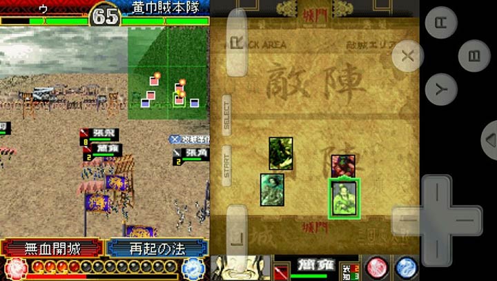 NDS版中,则是以逆时针转90度的纵向方式来游玩,以右侧的触控萤幕来替代盘面,以触控笔来进行卡片的置放与移动,左侧的上萤幕显示战场攻防画面。游戏除了收录街机版的登场武将与战器卡片之外,并将收录NDS版原创的武将卡片,同时也会具备NDS版原创的游戏模式。