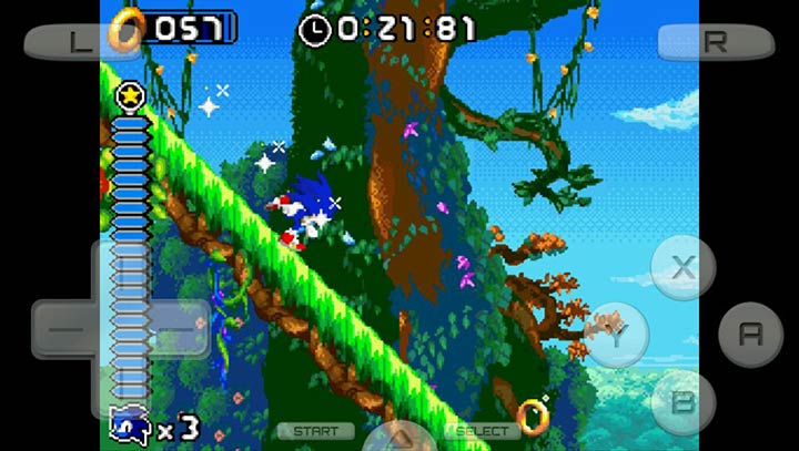 世嘉出品的经典跑酷游戏,英文不影响游戏进行游戏用NDS的双屏幕而加入了全新的玩法。在游戏中,玩家可以选择索尼克和Blaze。