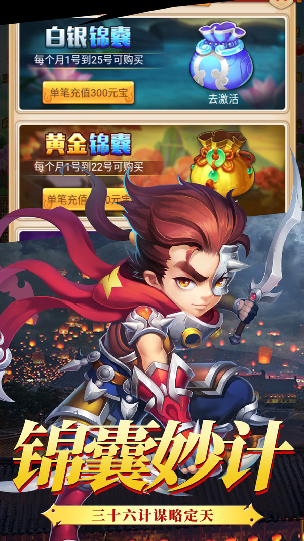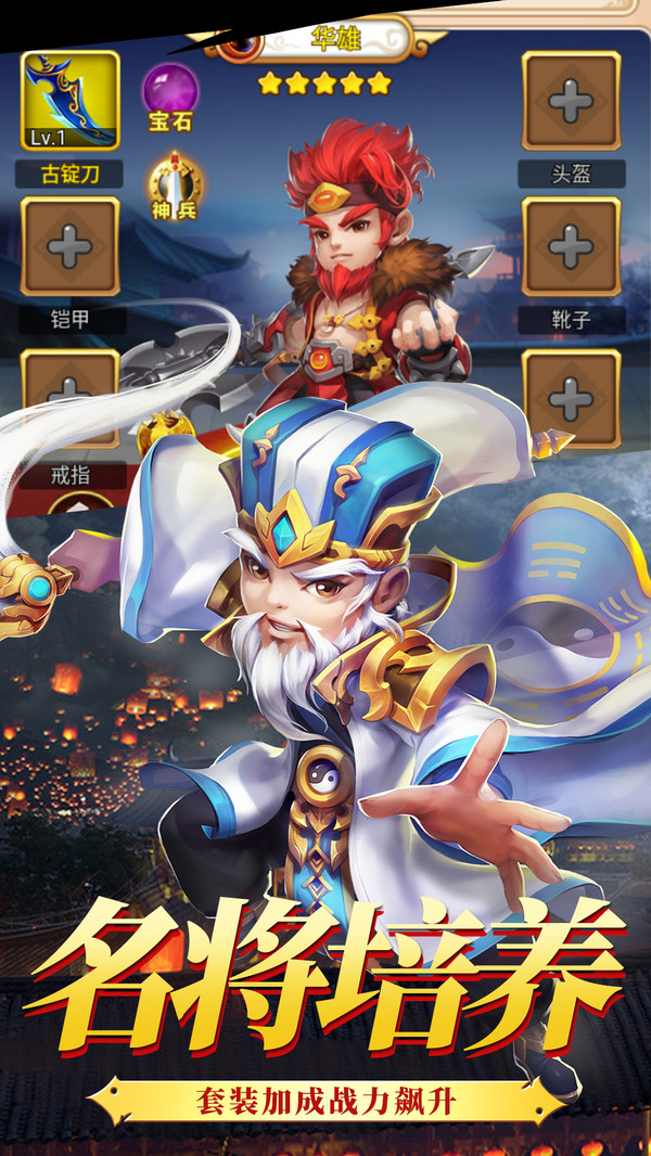 这款游戏以三国为时代背景,打造Q版萌新的青少年英雄武将。现在你不仅能培养炫酷神兵,还能收集极品神装!更有多层次的社交体系,让你体验国仇家恨,纵意儿女情长。