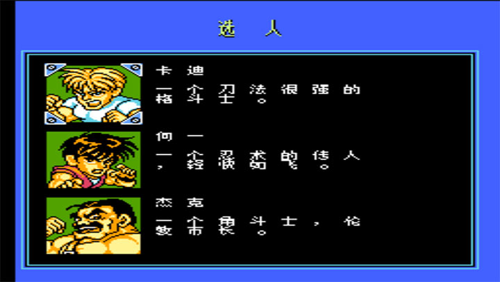 内容:1.无敌:暂停时上=开启,下=关闭2.最高等级即满血:暂停时右=开启,左=关闭3.跳关:暂停时按A键跳过当前章节关4.一招必杀:暂停时按B键1秒开启,按住2秒关闭5.绝招:选择键=开启(角色1的气功波,角色2的流行踢,角色3的飞身扑,)6.武器:暂停时按选择键1秒开启,按住2秒关闭7.换人:跳起时暂停,上=角色1,左=角色2,右=角色3