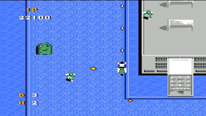 一款射击游戏,玩家需要控制摩托车来进行闯关,方向键是控制移动,B键为射击,A键为呼叫飞机进行导弹轰炸,期间敌军的任何子弹都会消失(除了最后一关),效果显著。与其他射击游戏不同的是,摩托车可以压死小兵,但是撞坦克的话,后果自负。支持无敌,无限命的可选作弊(开了无敌就拿不到道具了,慎用)