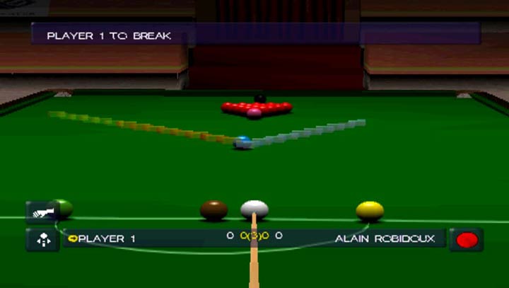 PS平台的一款台球游戏,斯诺克的击球顺序为一个红球、一个彩球,直到红球全部落袋,然后以黄、绿、咖啡、蓝、粉红、黑的顺序逐个击球,最后以得分高者为胜。
