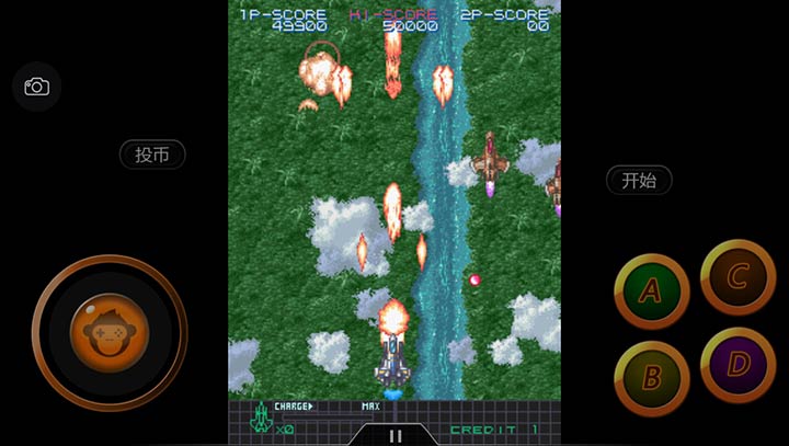 一款街机射击游戏,按A键为蓄力攻击。支持无敌,最大火力等可选作弊。