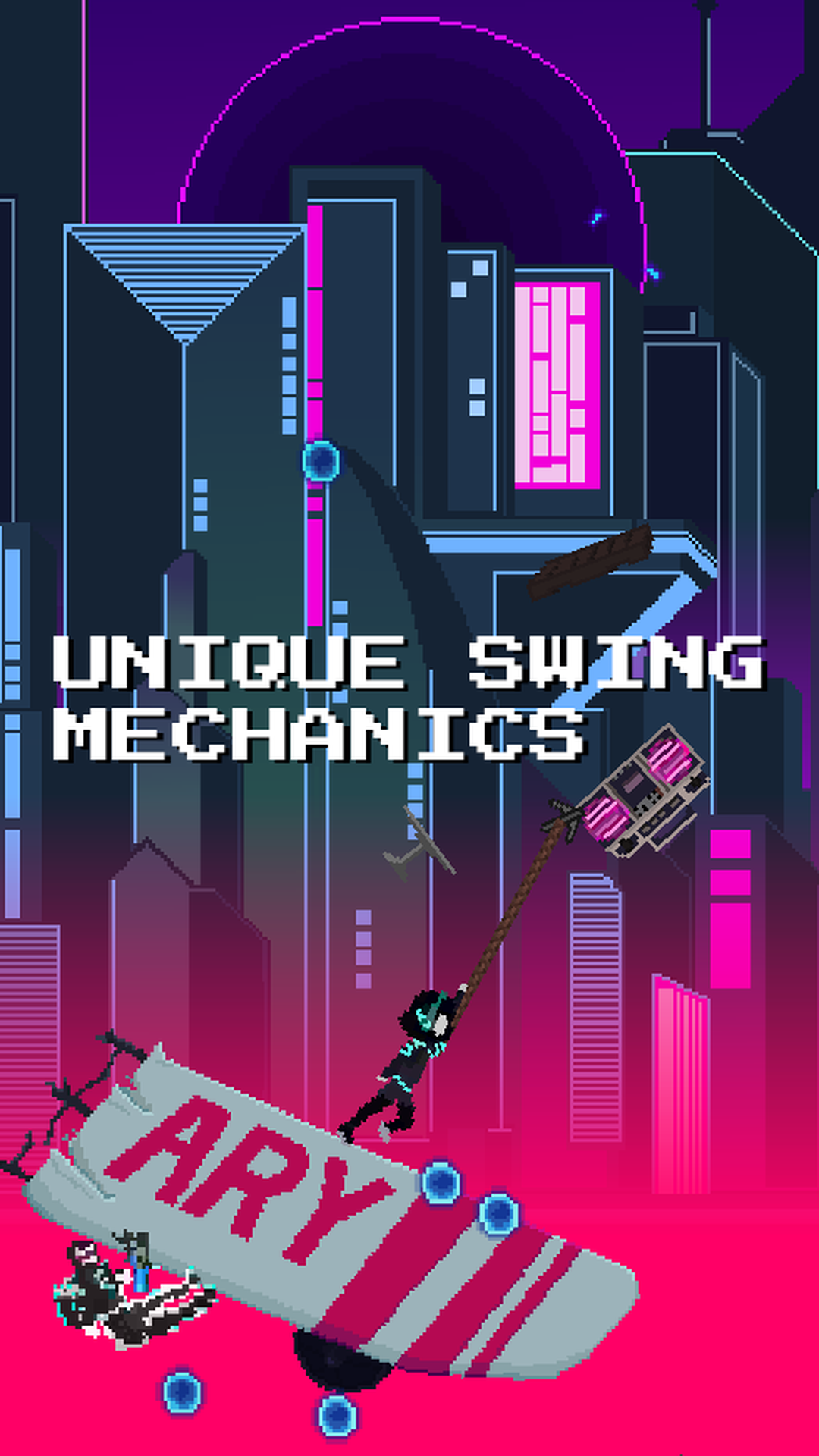 这款游戏你将利用超级绳索在城市中飞翔,高楼建筑不会阻挡你的脚步!在这个充满霓虹风格的城市街道上玩家将控制自己的炫酷角色通过甩钩来前进,精彩的操作,有趣的玩法,快来试试吧!