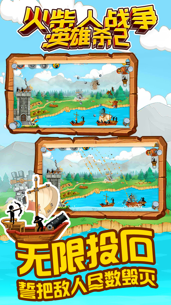 《火柴人战争:英雄杀2》是由开发商广州火创互娱网络科技开发的一款画风卡通可爱的策略塔防类游戏,游戏的主人公是非常经典的火柴人形象,各种萌系的角色养成,火柴人海盗将对你的小岛发起进攻。玩家们以简单的操作方式,带来了无限的趣味与欢乐,非常的不错!