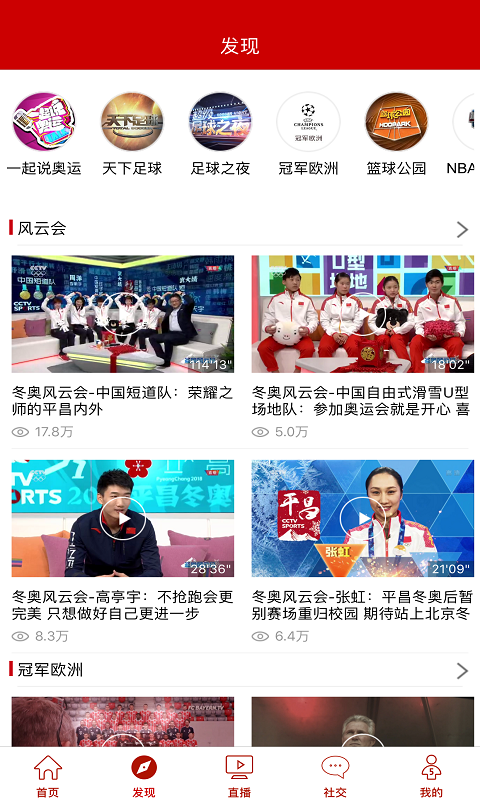 4.知奥懂奥,尽在CCTV5。在 “发现”页面,我们提供了“知奥”、“奥运典藏”、“人在奥运年”等多个版块,海量视频涵盖丰富的奥运知识,