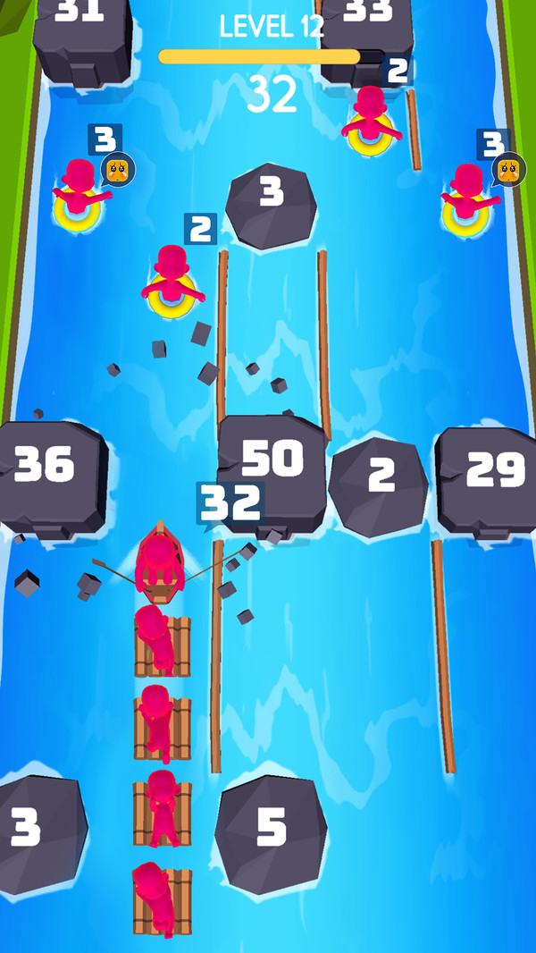 这款游戏玩家所驾驶的木筏会随着难民的数量增多而增多,游戏的玩法简单有趣,还有着丰富的关卡等你挑战。河道上有许多障碍物,避开它们,灵活运用道具,帮助你更好地通关。