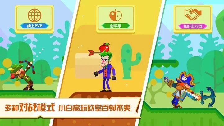 多种PVE玩法。射苹果和挑战机器人英雄让你有充分的练习空间并快速获取金币购买英雄