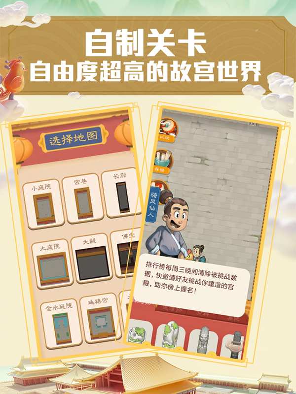 故宫口袋宫匠游戏是一款非常有特色的沙盒类手游,这款游戏有腾讯出品,以致于打造经典的传统游戏特色,经典唯美的游戏画风,让我们从多个角度了解故宫,在游戏中创造属于你的故宫世界。有喜欢的快去下载吧!