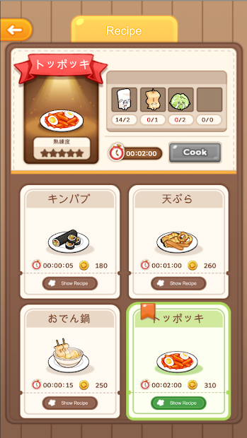 b、可爱的食材造型等待你来收集,并根据食材制作美味食物;