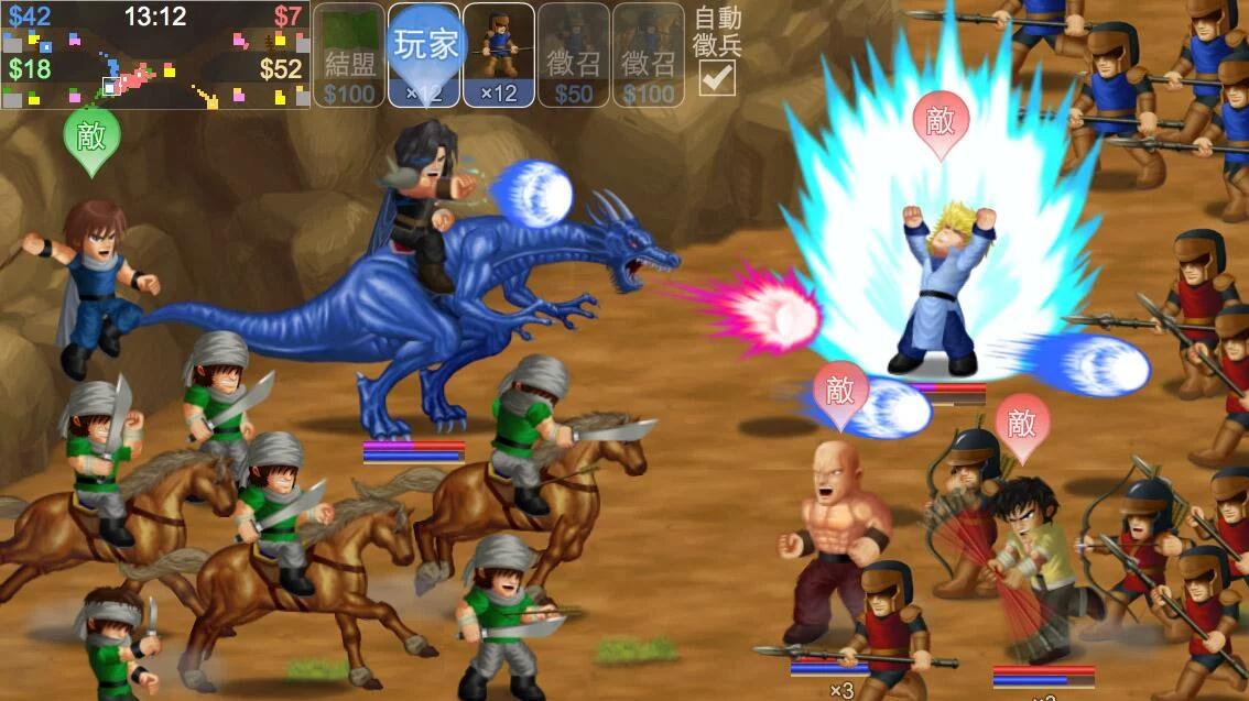 4.玩家可以带领一名队友与一名替补一同进入战斗,队友并不受控制,他会根据战场的局面自动作战,个人比较喜欢让拳师作为队友,不但攻击力强而且控场能力非常优秀,与街机的三国志差不多。