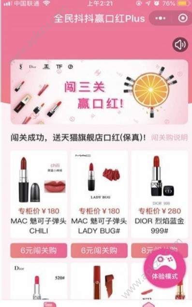 闯三关赢口红小程序是一款爆火的口红机小游戏,轻松有趣的游戏模式选择,在这里,你只需要动动手指,在复杂的关卡任务世界中完成三个关卡任务,你将有机会将你喜欢的大牌口免费带回家,种种正品口红等你收获,越到后面难度就越高,注意一定要活得非常高的分数,才能保证能得到口红,转动速度越来越快,最终的胜利将会是属于你的。