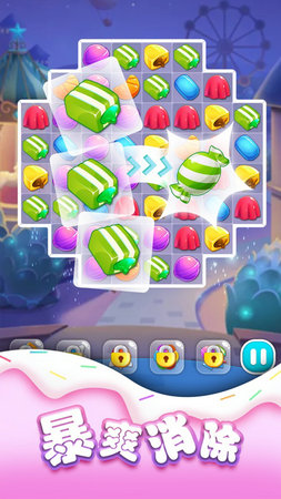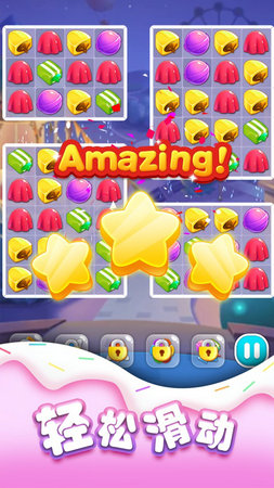 4.指尖滑动交换组合三个及以上的糖果消除,简单的操作适合所有玩家。